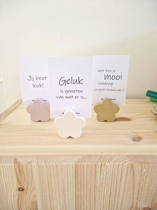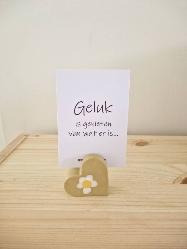Of je nu een vrolijke herinnering op je bureau wilt zetten, een kaartje een speciaal podium wilt geven, of gewoon een liefdevol detail aan je interieur toevoegt – met Klein Geluk doe je dat met stijl én gevoel.