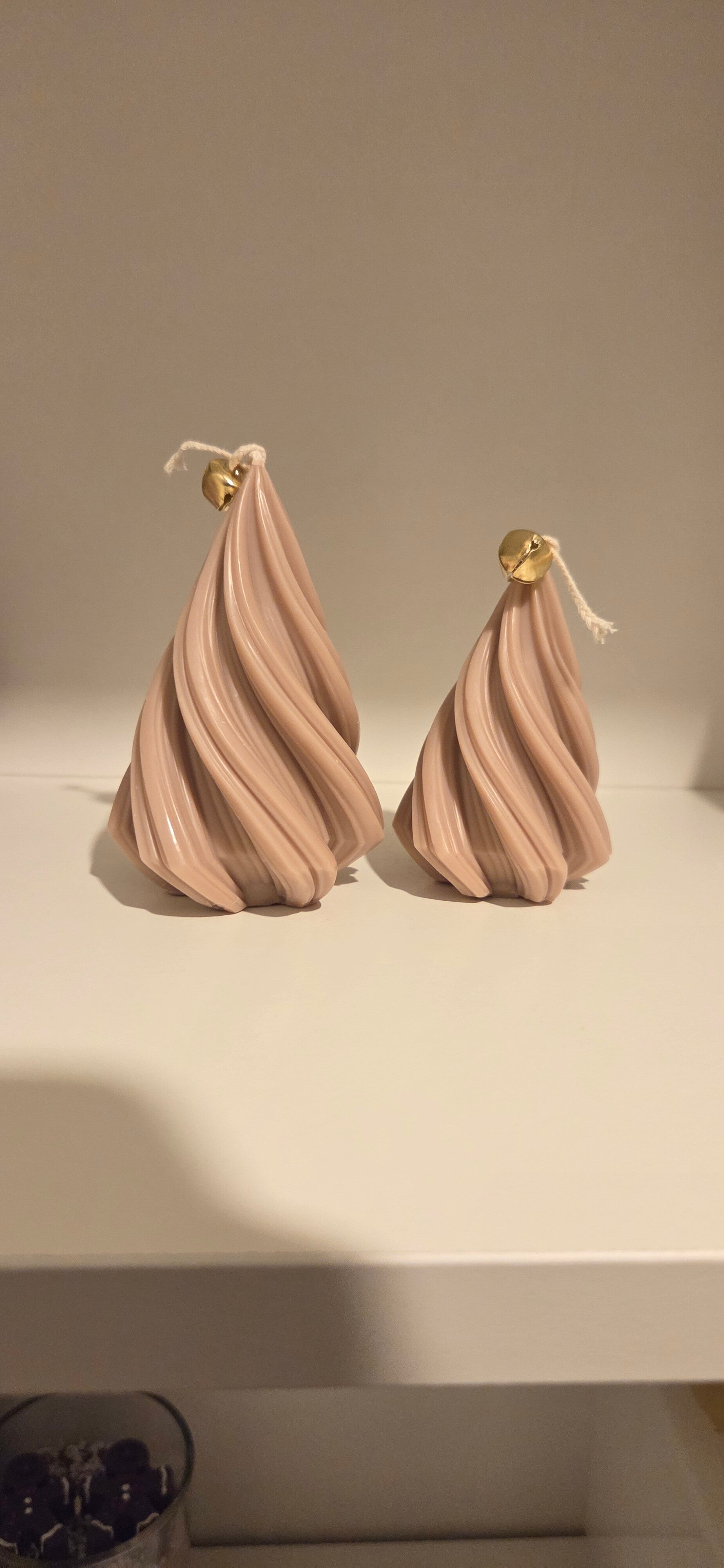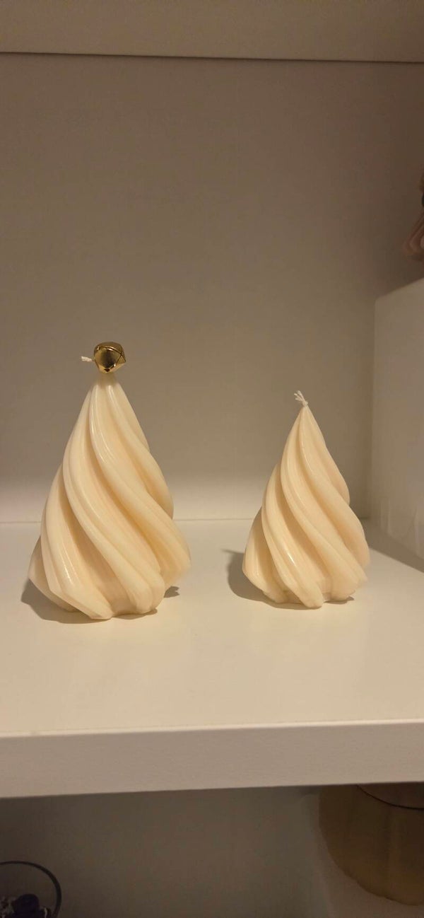 De Christmas Swirl-kaars vangt het licht in haar zachte golven, alsof ze langzaam danst op het ritme van december.